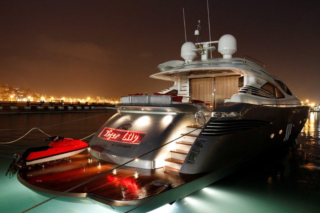 Luxury motor yacht TIGER LILY OF LONDON was delivered by Pershing yachts in 2009 and refitted in 2010. M/Y TIGER LILY OF LONDON measures 27.4m (89.10ft) and is available for charter in the Balearics. The yacht offers spacious accommodation for up to 7 guests in 3 en-suite cabins.