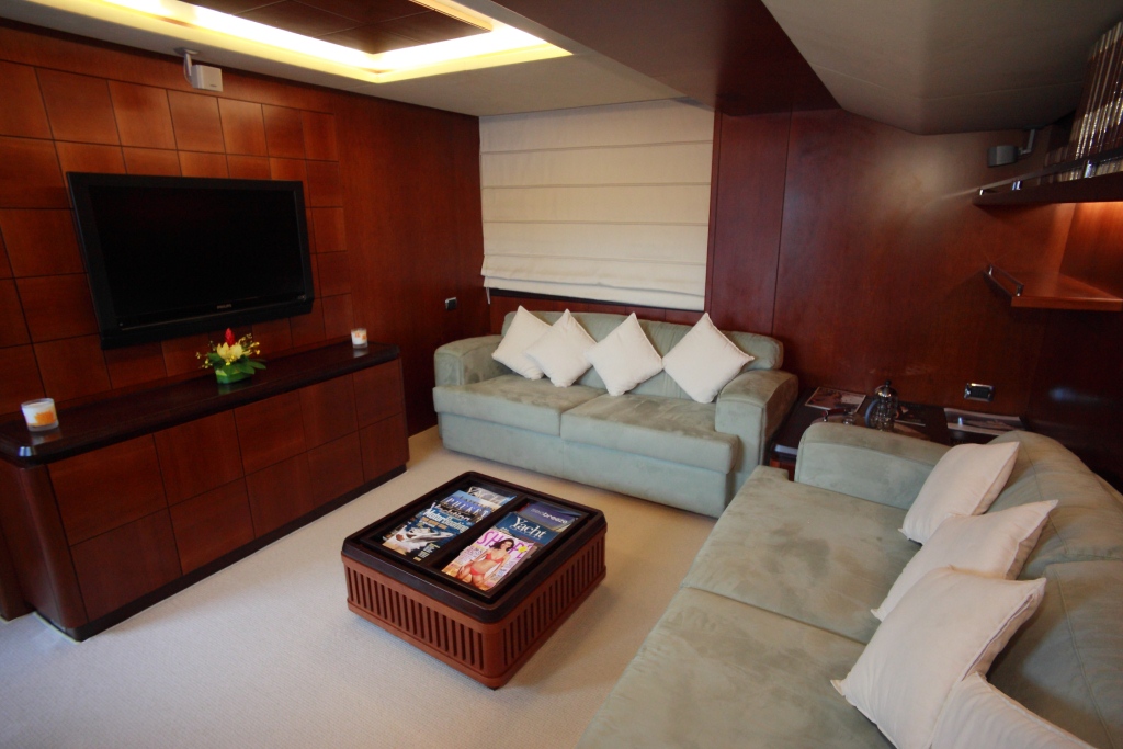 Her spacious salon is ideal for relaxing and she has a separate dining area further forward. There is a cozy sky lounge on the upper deck with comfortable sofas and a large flat screen TV, where guests can enjoy a quiet moment or relax with a film.