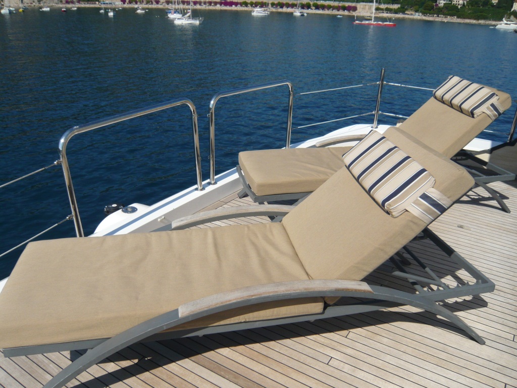 The en-suite facilities in the master cabin are on a split level and feature a large changing room followed by deep bath tub, separate shower and his and hers sinks, all beautifully laid in fine marbles. A VIP cabin is forward and full beam of the yacht with a queen size bed and en-suite facilities.