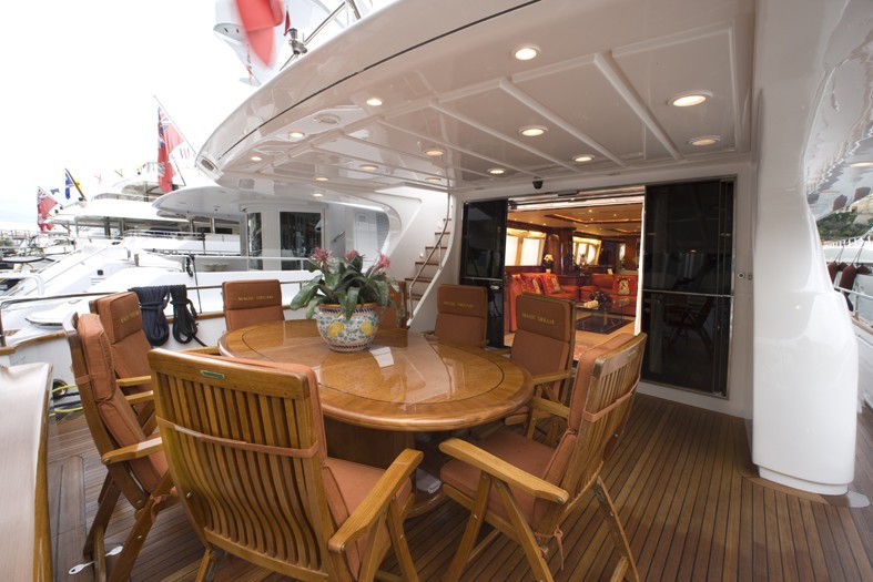 Luxury motor yacht MAGIC DREAM was designed and launched by Italian shipbuilder Falcon in 2006. The yacht measures 31.5m (104ft) and can accommodate up to 12 guests in 5 en-suite cabins.