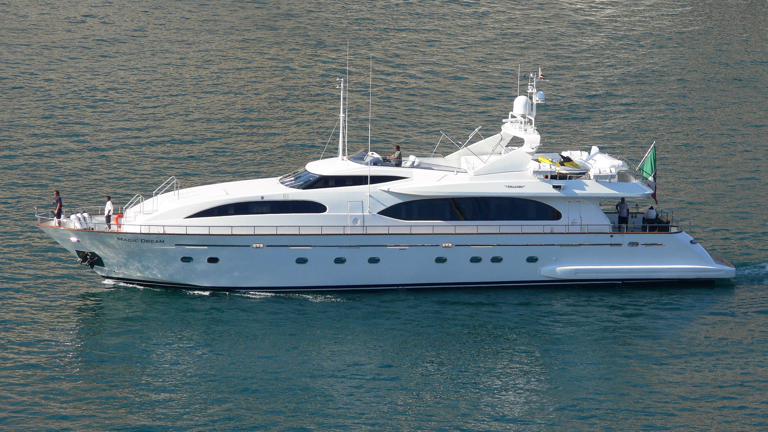 Luxury motor yacht MAGIC DREAM was designed and launched by Italian shipbuilder Falcon in 2006. The yacht measures 31.5m (104ft) and can accommodate up to 12 guests in 5 en-suite cabins.