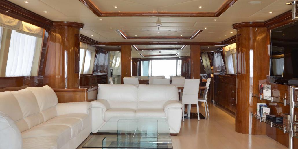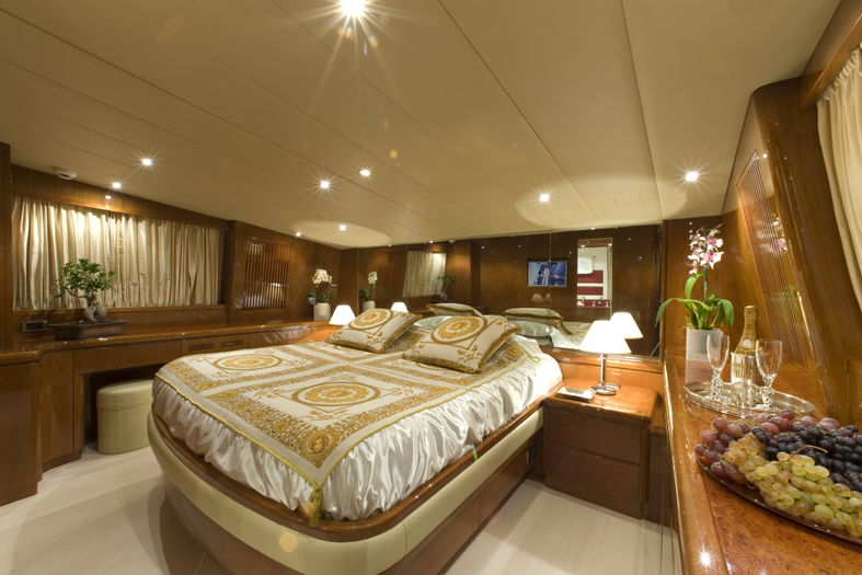 The yacht measures 31.5m (104ft) and can accommodate up to 12 guests in 5 en-suite cabins.
