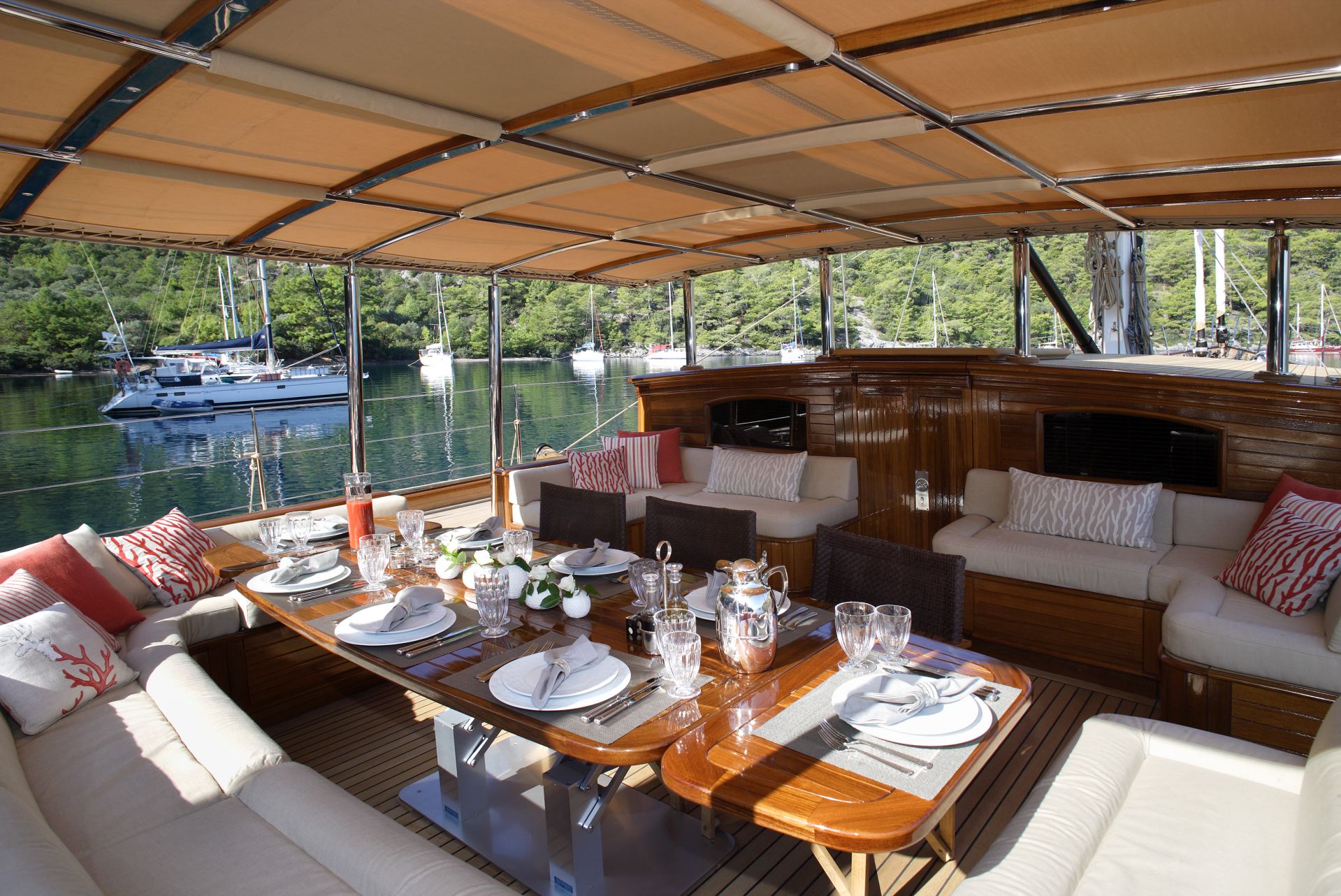 The walls are teak with woven leather paneling and marble accents in the bathrooms. EUGENIA VII has the following yacht amenities onboard: Tenders & Toys include a 4.3 meter AVON jet tender w/ 99hp engine, Mahogany sailing dinghy ...