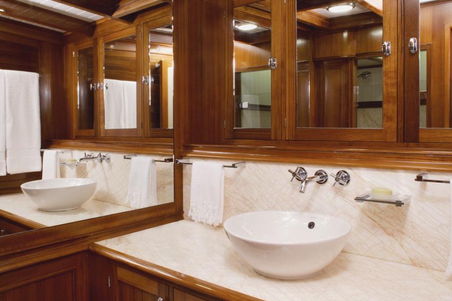 She is a perfect example of modern performance with classic style and charm, sleeping 8 guests in 4 spacious and beautifully decorated cabins, and is well equipped with air conditioning throughout.