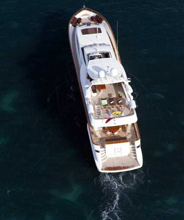 The Falcon 102’ motor yacht YLANG YLANG also features expansive exterior decks that are always a favourite area for guests when cruising in the Mediterranean. On the aft deck charter guests can enjoy al fresco dining and there is port and starboard access to the large swim platform.