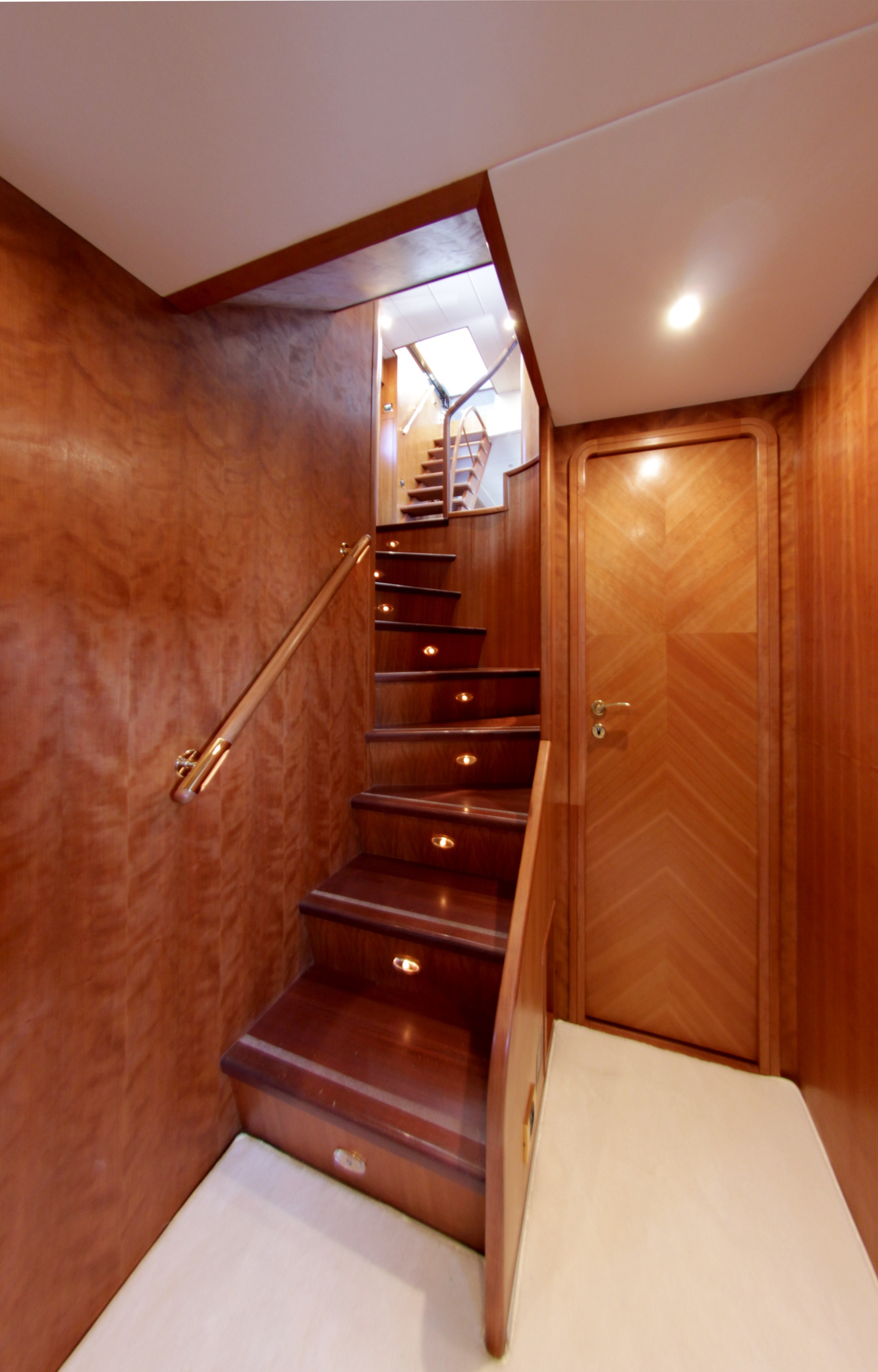 The master suite features a double bed, sofa, his and hers sinks, en-suite facilities and spa tub, the VIP cabin offers a double bed and en-suite facilities with shower, a further 2 double guest cabins offer double beds and en-suite facilities. 1 Pullman berth is available for a ninth guest.
