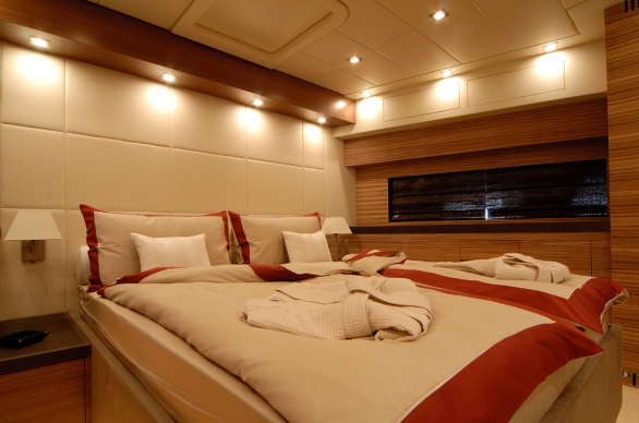 Further aft a full sunpad is ideal to catch a Mediterranean tan, or simply kick back and watch the water enthusiasts enjoy the many water toys on offer, from the extended swim platform.