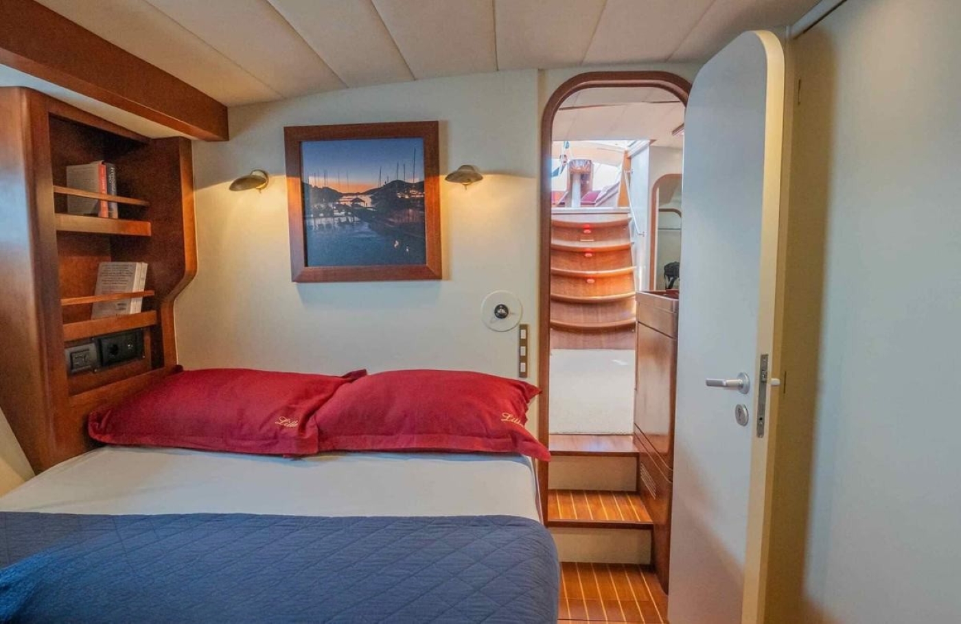 Four ensuite cabins can accommodate up to eight guests in three doubles and a convertible – twin/double. Tender & Toys
