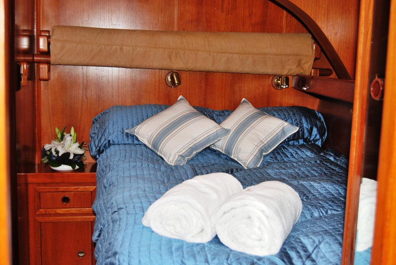 The sloop rigged COCONUT measures 24.4m (80ft), offering spacious accommodation for up to 6 guests in 3 en-suite cabins. The master stateroom is aft of the salon with a center lined double bed, while a further 2 guests’ cabins are forward of the salon, on port and starboard offering a double bed each.