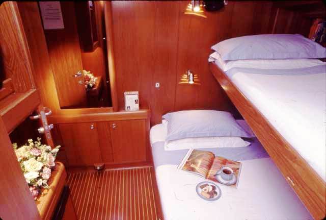 CAPERCAILLIE is able to accommodate up to 6 charter guests in 3 cabins. Each cabin is completely self-contained, featuring double beds or twin singles, en-suite bathrooms, TV, and videos.