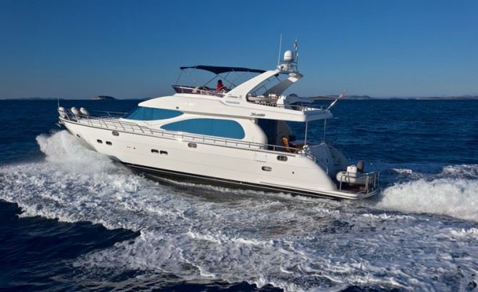 The SUSAN II yacht is powered by two Cat 746hp engines and cruises at an average speed of 18 knots.