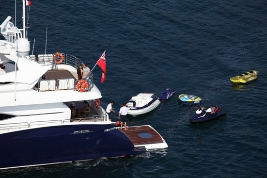 These include a 5 Metre tender, two stand-up jet skis, one three-seater jet bike, a banana, ringo, waterskis, wakeboard and snorkeling gear and fishing rods.