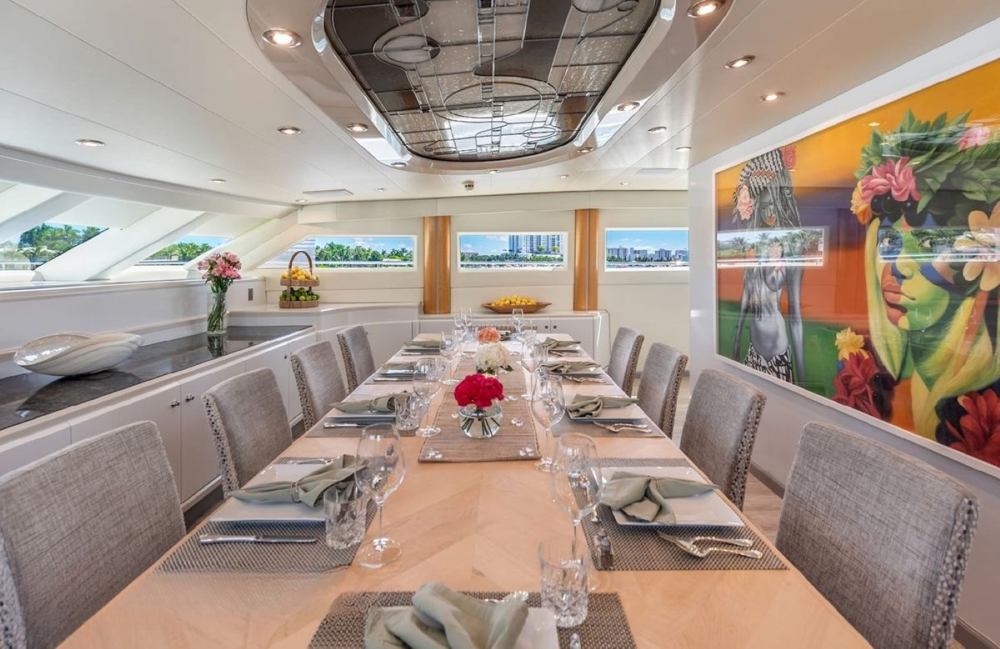 On the main deck the formal dining area is forward and receives an abundance of natural light along with excellent views through the forward windows.