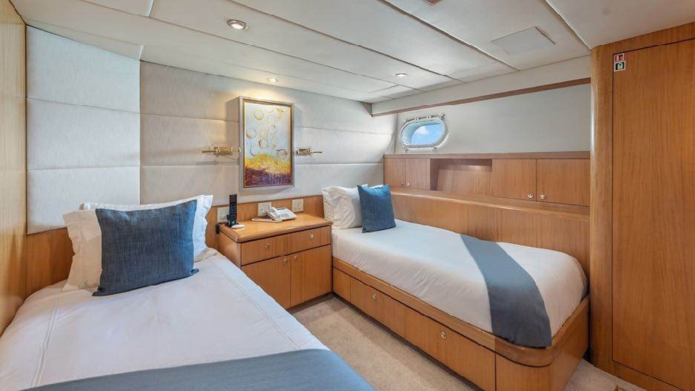 The foredeck is fitted with a sofa and sunbed for guests to savour the sunshine and the views in peace.