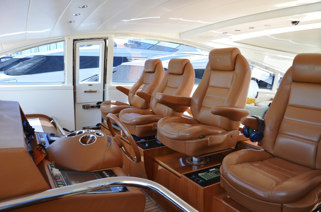 The master suite is full beam of the yacht and features a walk around king size bed, vanity, private salon and en-suite facilities with his and her sinks. The VIP cabin offers a double bed and en-suite facilities and a further cabin has 2 twin beds and en-suite facilities. All cabins offer audio and visual entertainment systems.