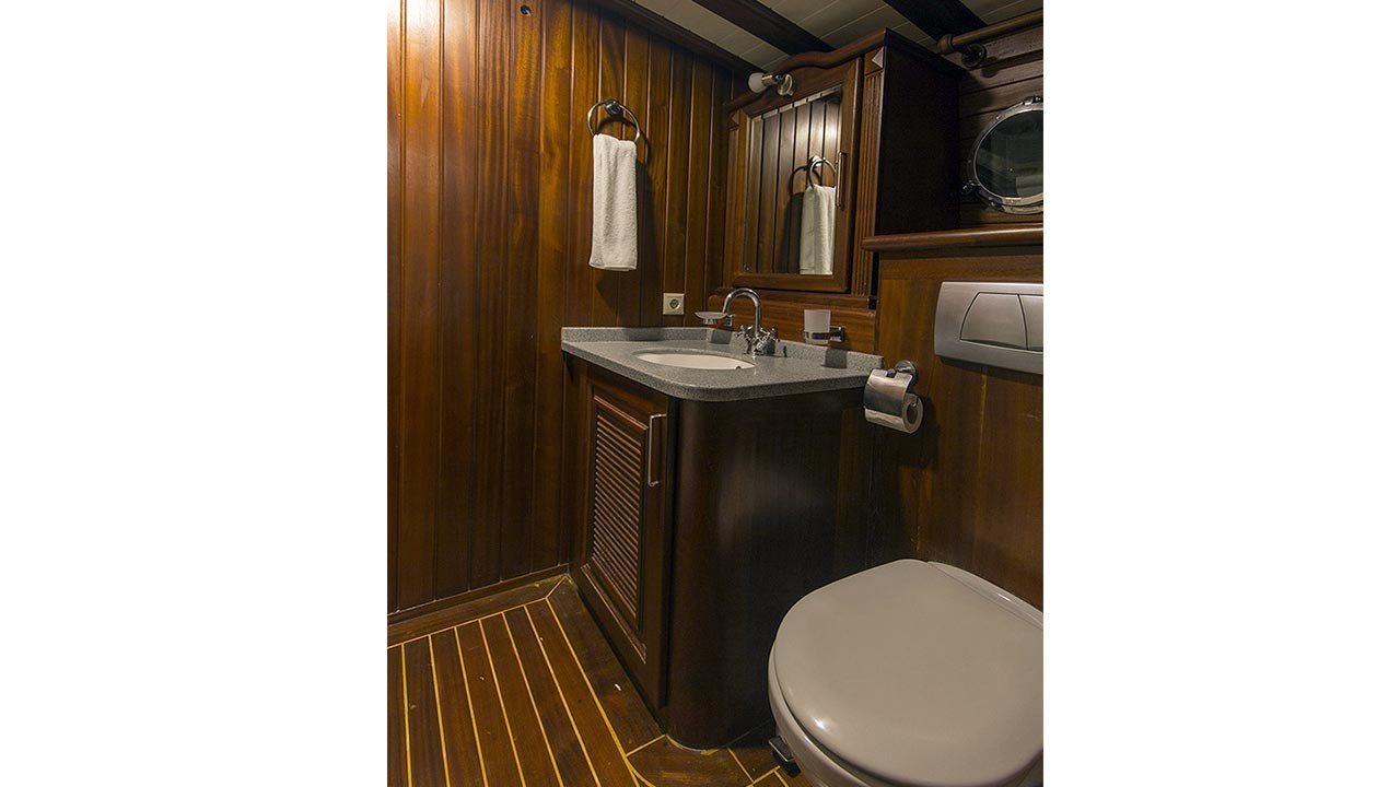 Behind the Master suite there are two triple cabins, both containing a queen and single bed along with a desk and wardrobe. Similar to the master en-suite, the bathrooms have a toilet, sink and shower.