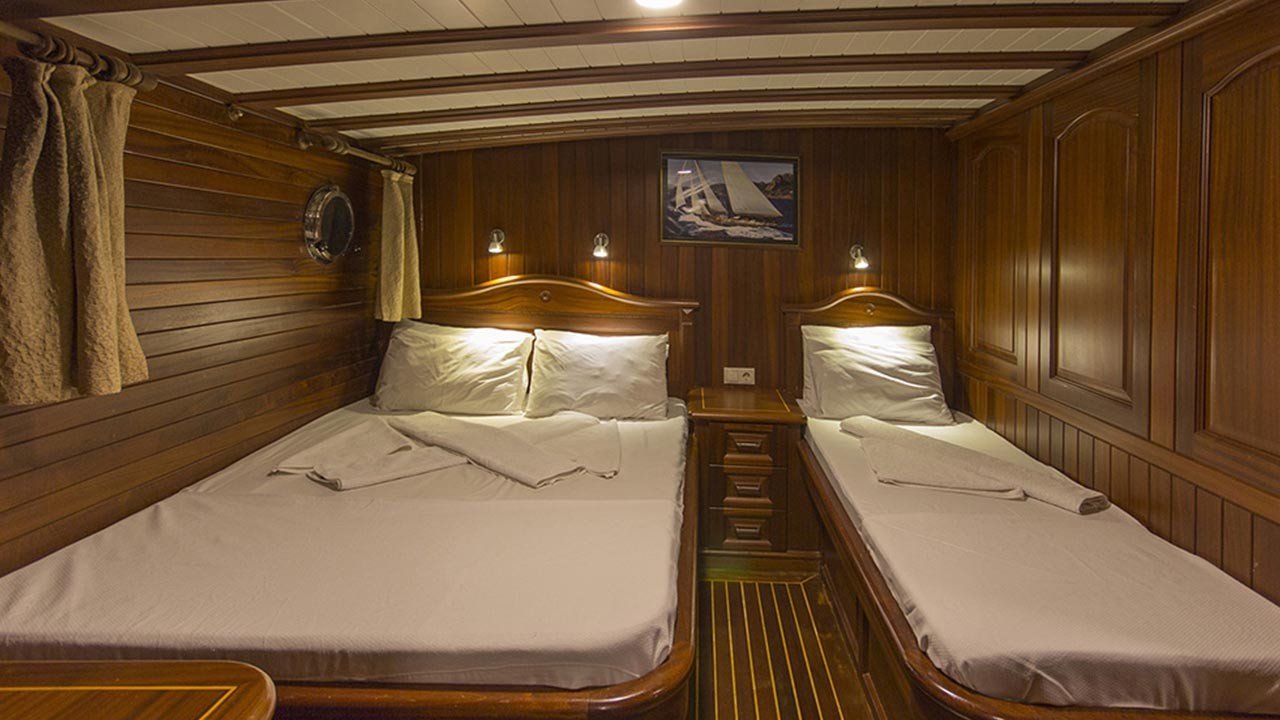 The accommodation sleeps up to 12 guests in six spacious cabins, with a crew of five to provide professional service.