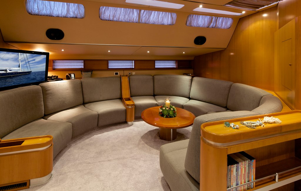 The light-filled and spacious salon is entered via a stairway from the cockpit.