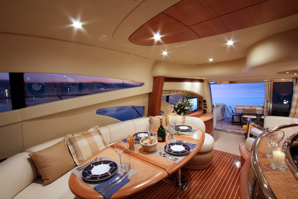 Inside the Yacht WilJim is bright and spacious with many large windows, chic clear wood and cream leather.