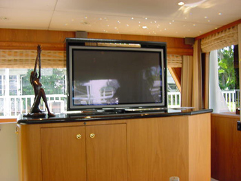 The sumptuous master suite has a California King Bed, walk-in closet, luxurious ensuite granite bath, TV, CD and DVD. The two guest staterooms have ensuite heads with granite counters and showers, two twin beds, CD players and ample storage space for personal belongings.