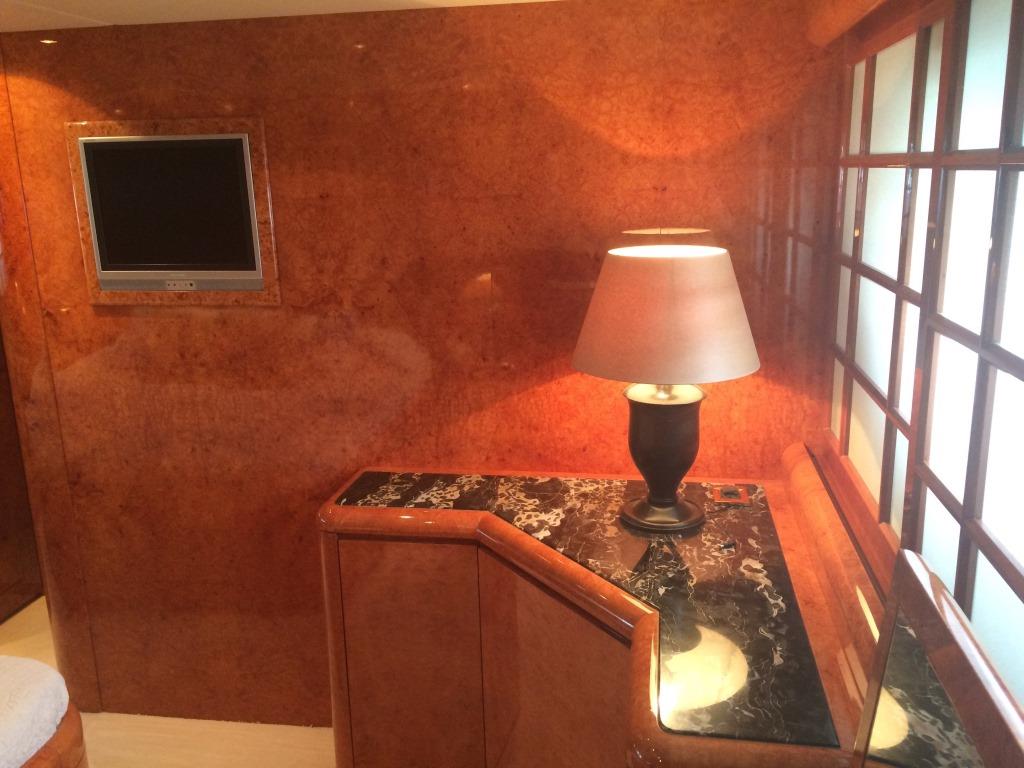 The VIP cabin features a TV Plasma, DVD/CD/HiFi, Phone, Sofa, Ensuite Bathroom. The Guest Double cabin offers a TV, DVD/CD/HiFi, Phone, Ensuite Bathroom. The Twin also has a TV, DVD/CD/HiFi, Phone, Ensuite Bathroom.