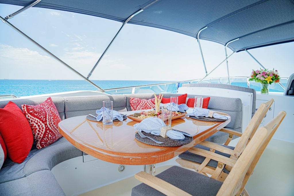 Crewed charter yacht LADY VICTORY has plenty of exterior living options.