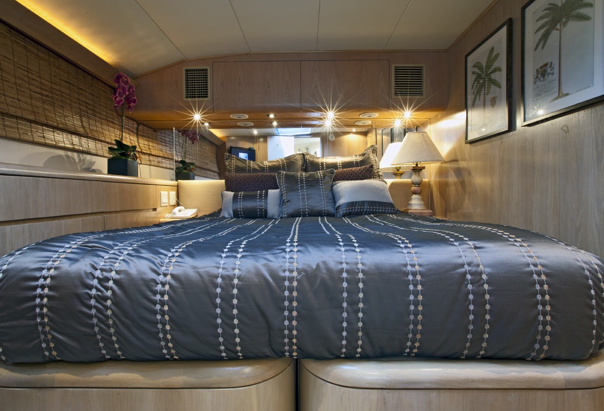 Full Stateroom: Full/Queen bed. Shower. 27"; Flat screen TV with DVD. Ipod hookup.