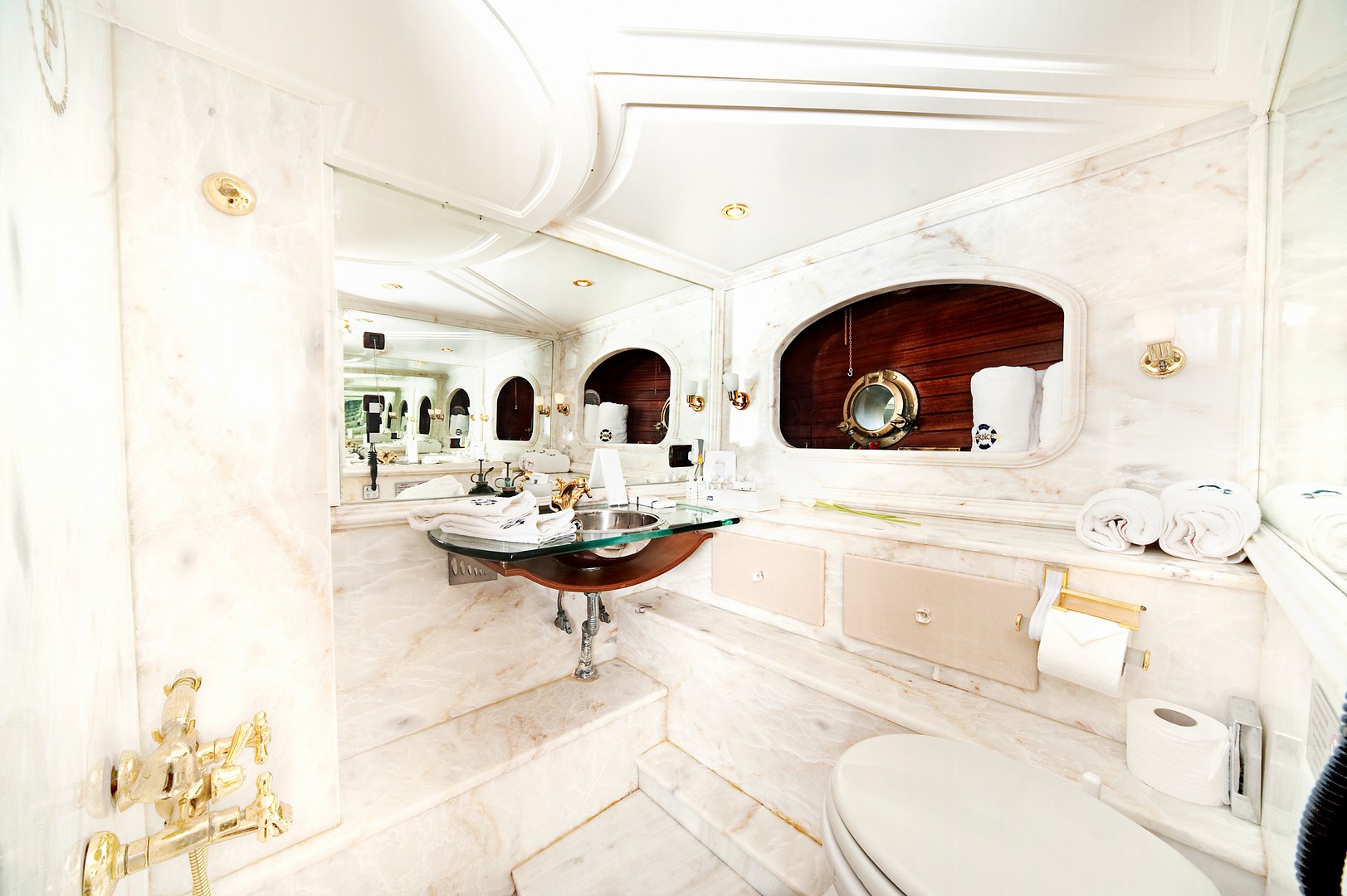 There is wall-to-wall carpeting in all accommodation. A crew of 3-4 is placed separately for additional privacy of guests. In-room amenities include a living room and a dining area with kitchen facilities for private cooking.