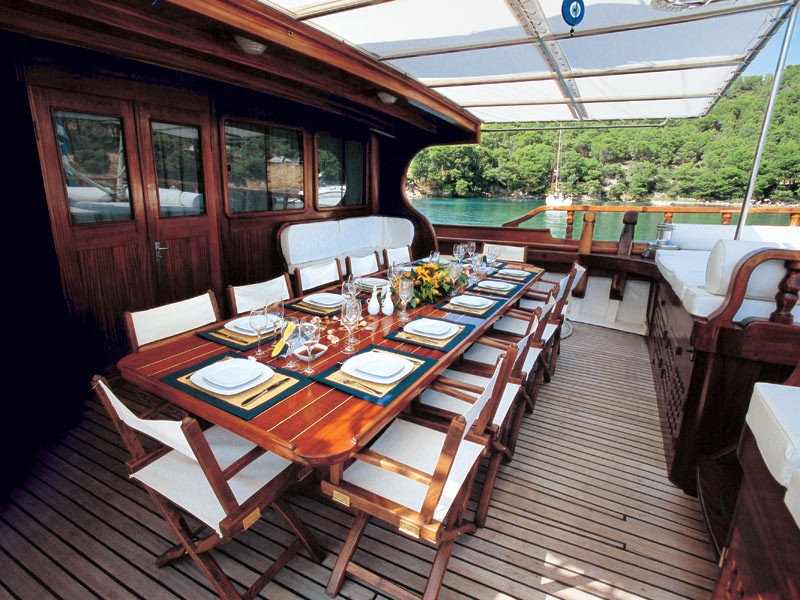 NOTABLE FEATURES: ~ Stunning gulet ideal for luxury charters ~ Welcoming & inviting atmosphere ~ Indoor dining area ~ Open-air dining option ~ Sunbathing & relaxation spaces ~ Professional crew of 5 ~ Selection of water toys