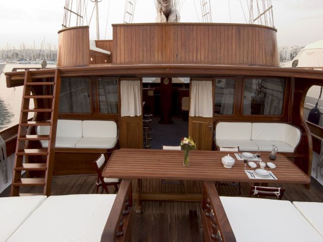 She has a broad beam of 9.40 meters giving her a large interior volume as well as large decks to enjoy. Built in 2000, yacht MATINA had a refit in 2004, 2008, 2019 and 2020. She is an ideal vessel for larger groups as she can accommodate up to 20 charter guests in 8 staterooms with a crew of 6 onboard.
