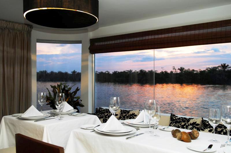 Aqua’s Dining room has panoramic views into the great wilderness. Fine china and crystal and superb service are part of the experience, similar to what you would expect from a fine dining restaurant in Lima.