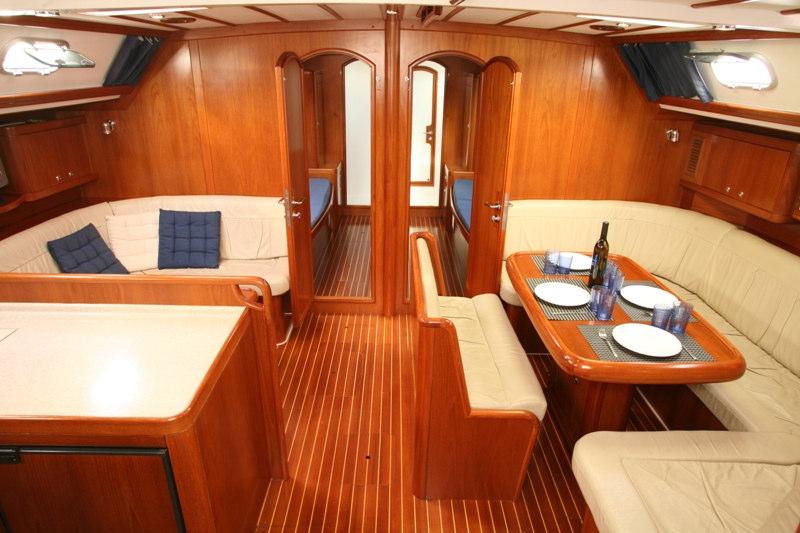 The salon offers a formal dining table on the starboard side with built in seating, on the port side is a further sofa, coffee table and TV entertainment. Sailing yacht ATREVIDA is fully air conditioned throughout, alternatively she offers plenty of ports and hatches for a more natural ocean breeze.