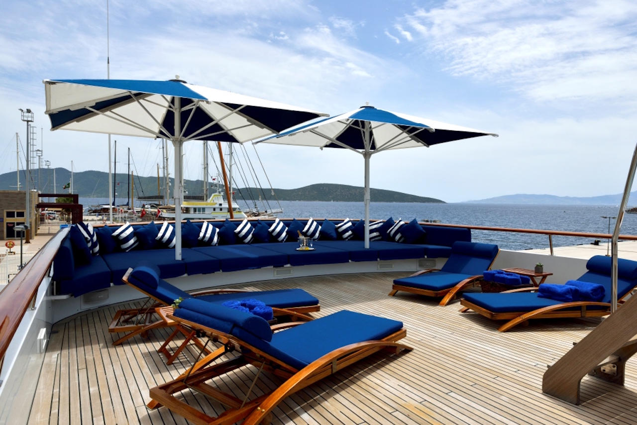 On the main deck there is a large comfortable salon with a bar area and a separate dining room, and on the bridge deck, there is a good sized, elegant sky lounge and a disco!