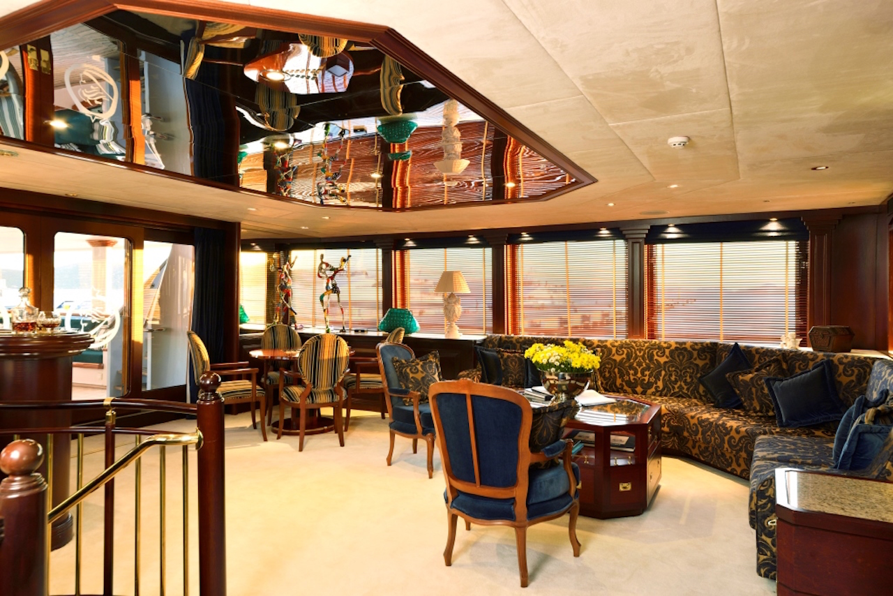 On the main deck there is a large comfortable salon with a bar area and a separate dining room, and on the bridge deck, there is a good sized, elegant sky lounge and a disco!