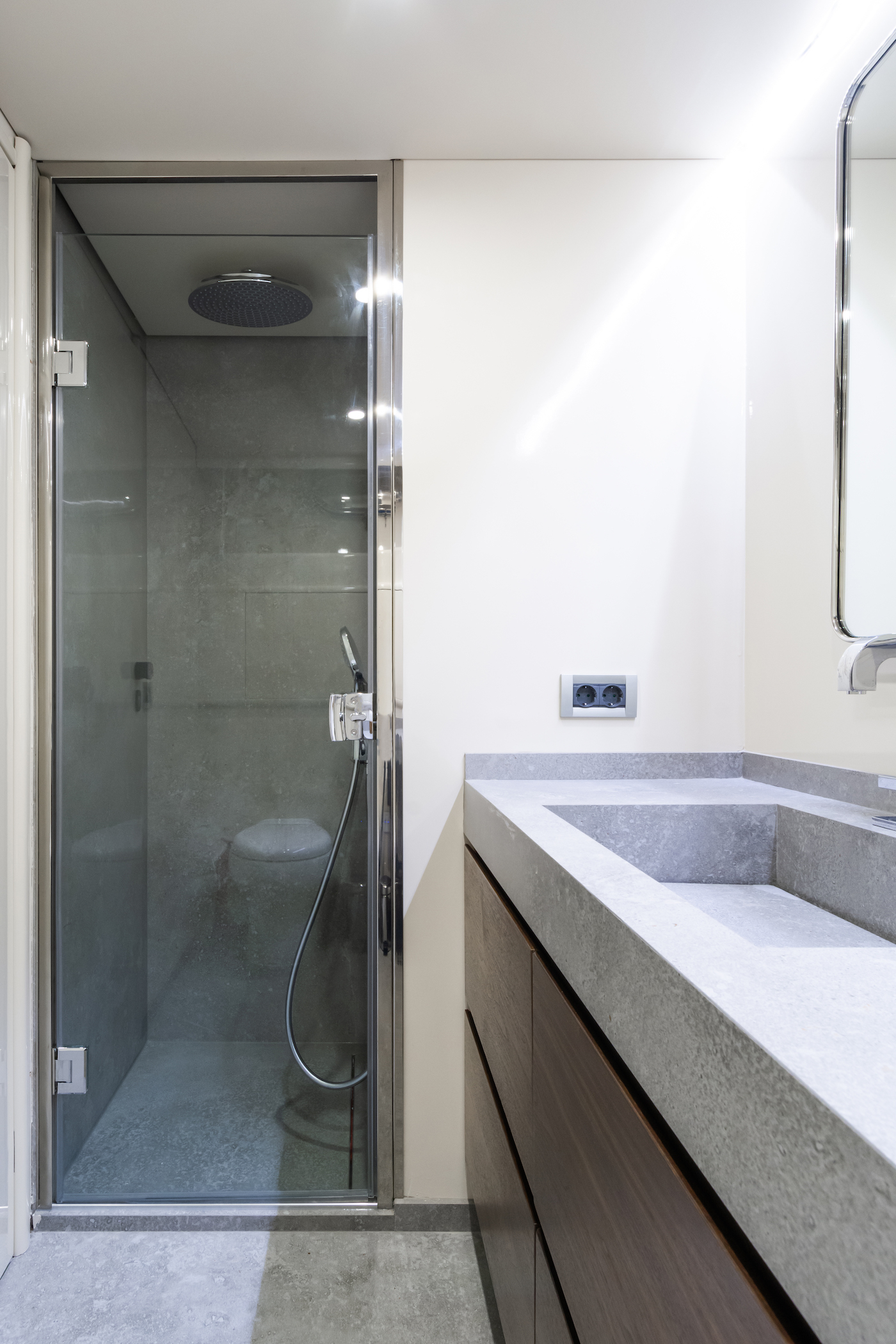 Motor Yacht AXELLA has a simplistic interior; her white paneling and light carpeting combined with subtle hints of vibrant colour give an airy and spacious atmosphere.