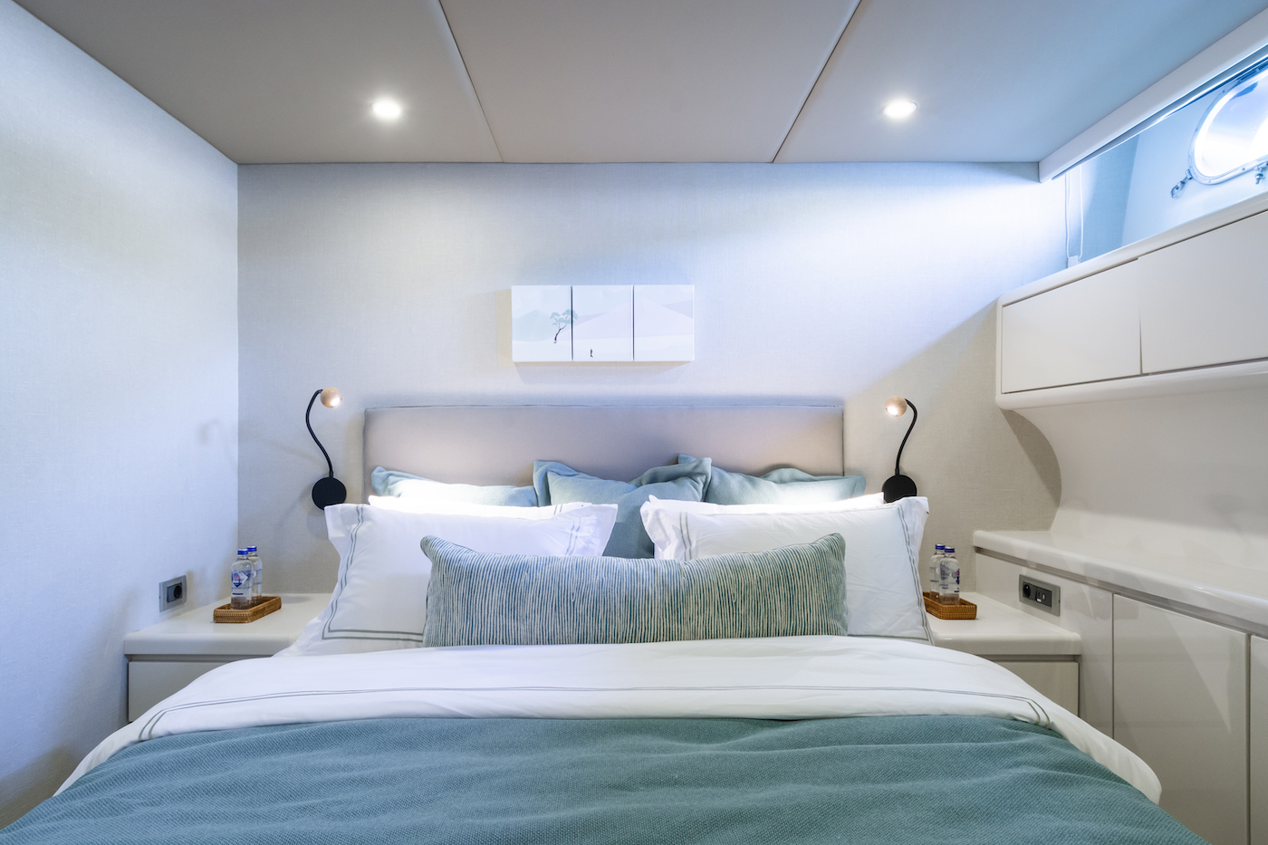 AXELLA can accommodate 10 guests in 5 generous cabins and is available for charters offering comfort, luxury and a great crew of 7.
