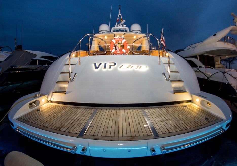 Motor yacht EL VIP ONE (Ex DAYENOU) was built by Mangusta in 1999 and was refitted in 2009. The yacht measures 24 meters (78.7ft) and she has a sleek and sexy exterior designed to reach exhilarating speeds of 34 to 40 knots with ease.