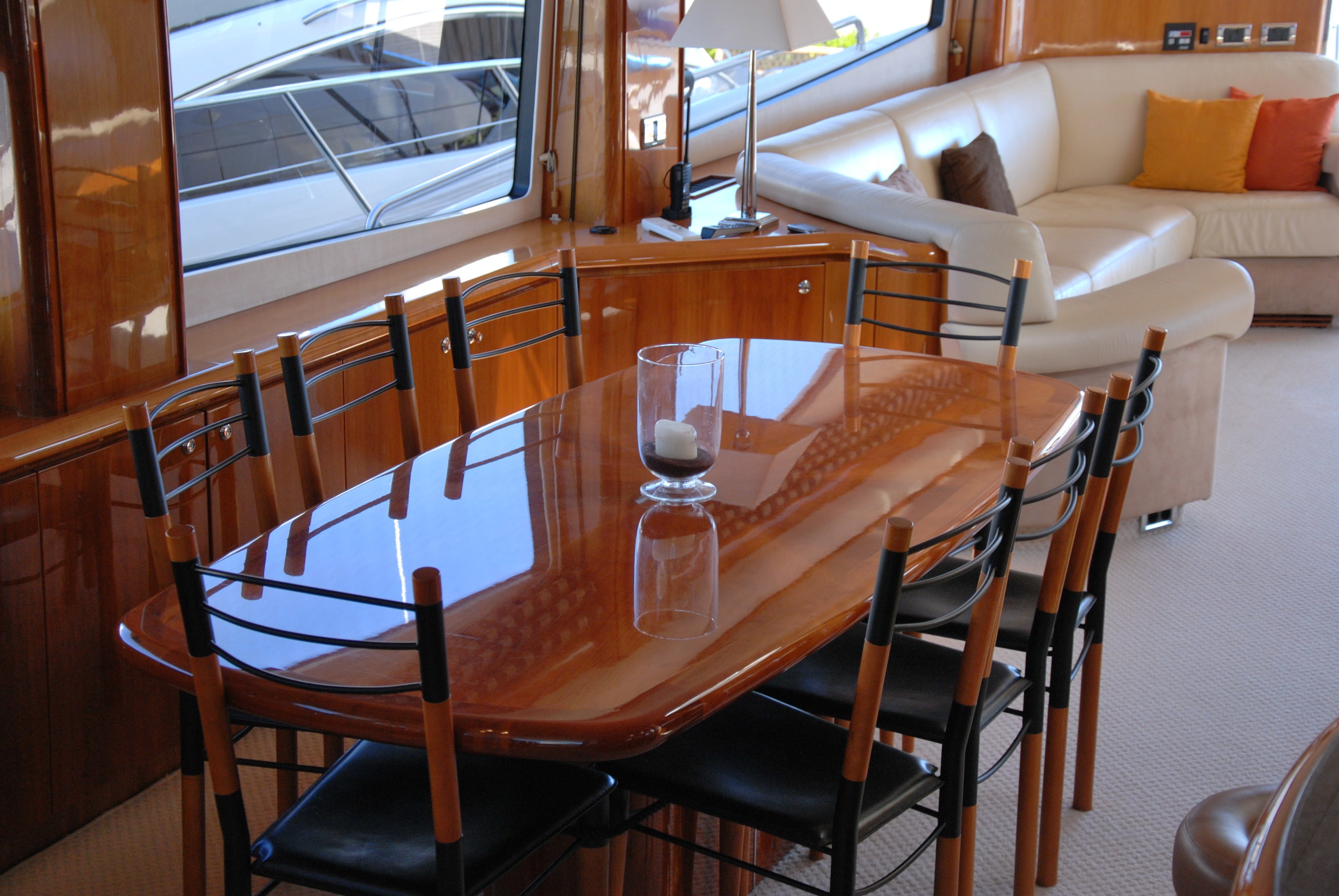 Further forward the pilot house offers an alternative dining table, suitable for breakfast and hors-d'oeuvres.