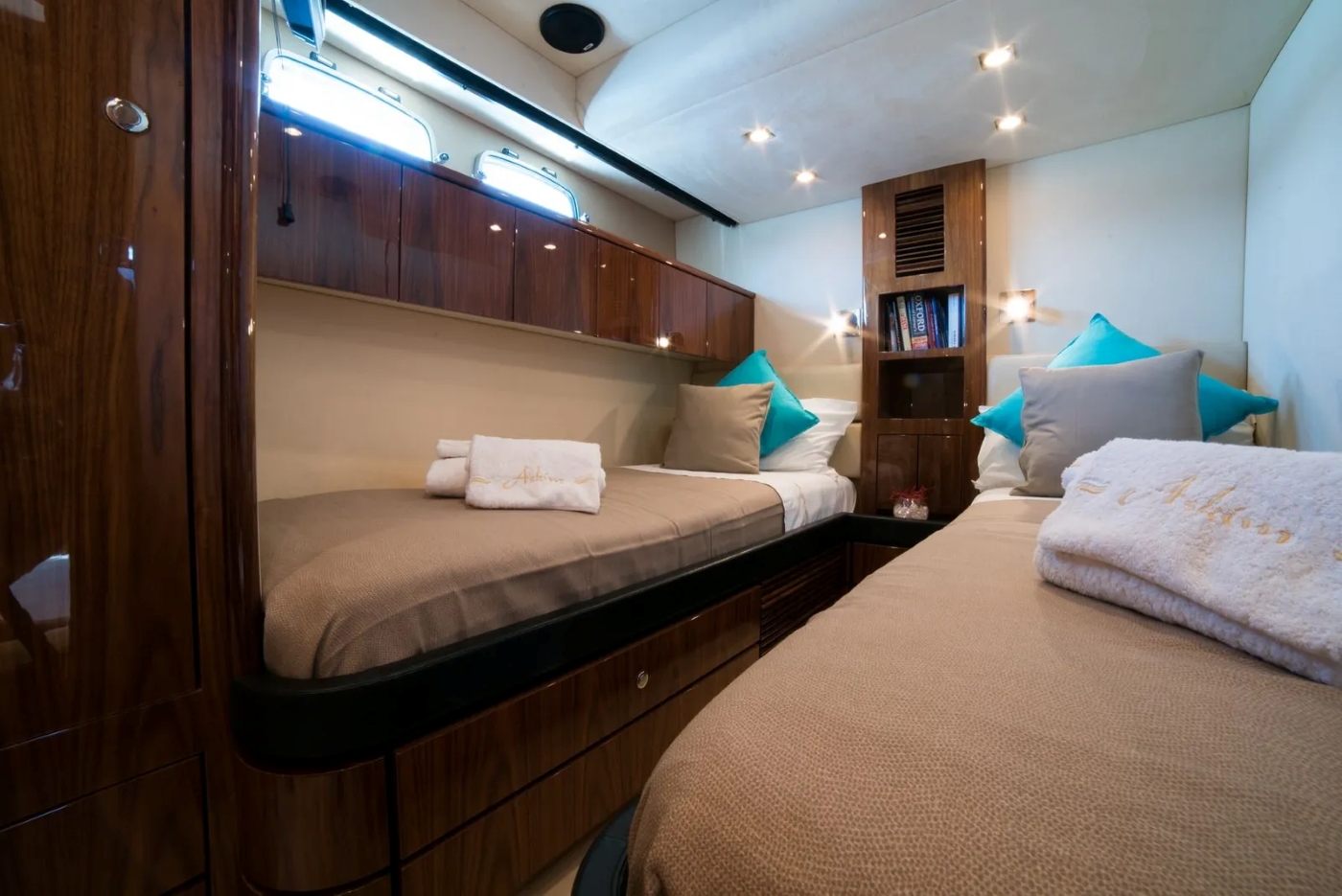 She boasts a contemporary interior décor and spacious exterior living areas, while offering deluxe accommodation for up to 8 guests, in 4 en-suite cabins.