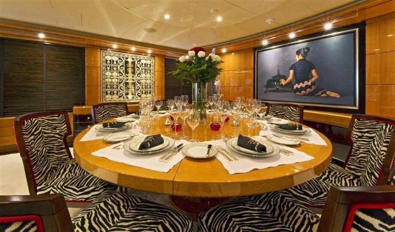 Yacht LADY MM has chic eclectic interior designed by Janet Leroy and features fabulous areas to unwind.