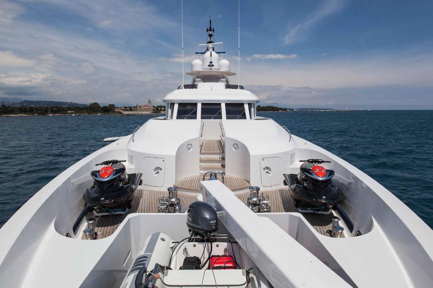 The LADY MM motor yacht has the following Tenders & Toys: A Novurania 5.30 DL with 175 HP inboard engine (9 seats), 2 Waverunners Seadoo RXP 255 HP, Snorkeling equipment, Water skis, Donuts