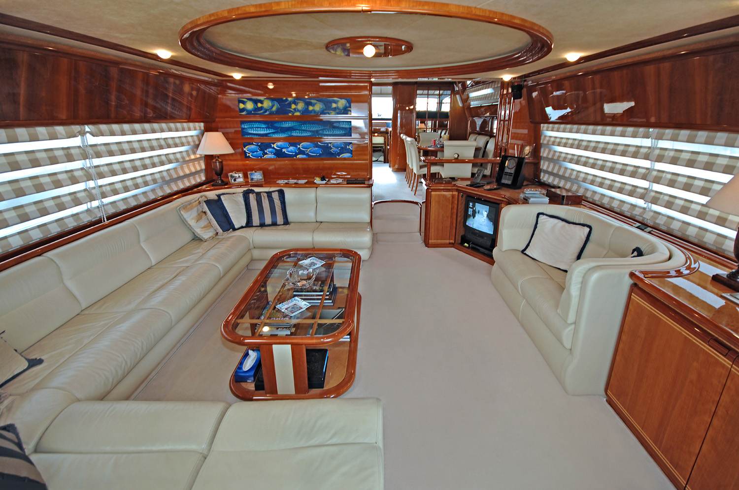 Charter yacht KENTAVROS has a good-sized and comfortable main salon with a cream carpet and with a generous U shaped settee on the port and another settee on starboard with colourful scatter cushions. Further forward there is an ...
