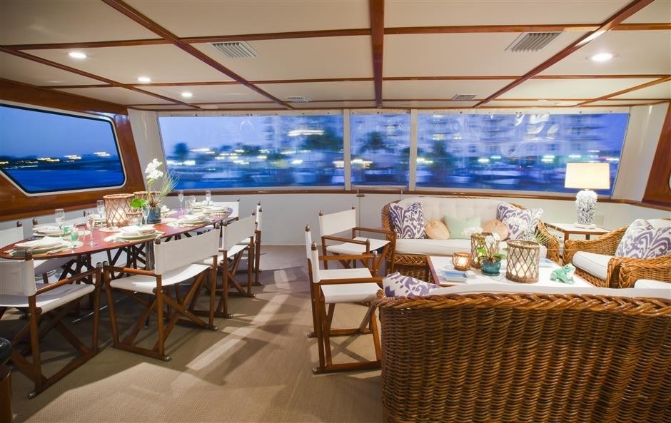 The master suite has a king sized bed, there are 2 queens and an additional queen with 3 bunks. Each cabin has an ensuite bathroom. GEORGIANA has a range of indoor amenities, including Internet / Wifi, TV, DVD and CD player with well stocked libraries, and a variety of Board Games.