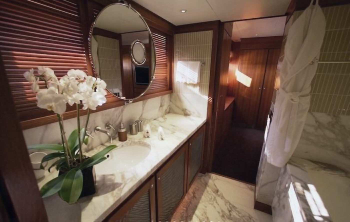 The master stateroom is on the main deck and has a spacious private office adjoining, a King size bed, en-suite bathroom with Japanese bath & separate shower as well as full access to the yacht's entertainment system via touch screen remote control. This means you can escape and relax in total privacy.