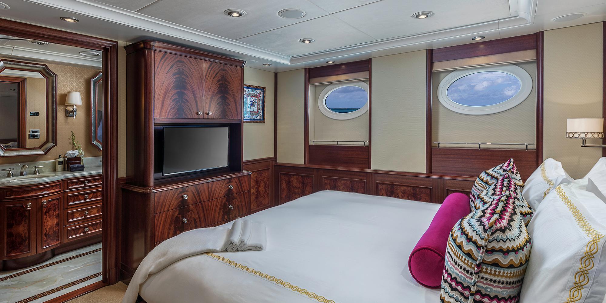 The spacious sun deck is equipped with a Spa Pool, ample sun lounging space, a day head, stow away gym equipment and a full wet bar so that guests can enjoy drinks and alfresco dining in comfort and style with great ...