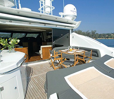 The SAMANA motor yacht also has a foredeck area that features a large sunpad with adjustable headrests and sunshade.