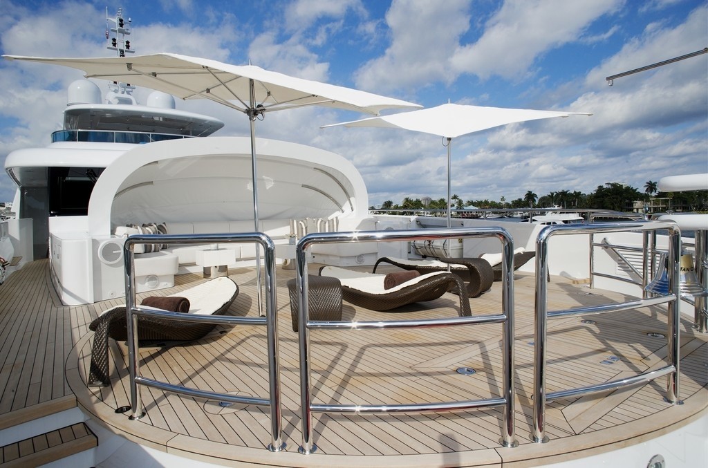 INCEPTION can accommodate up to 12 guests and has a sleek profile, luxurious interior, and several exterior deck spaces ideal for both relaxing and socializing.