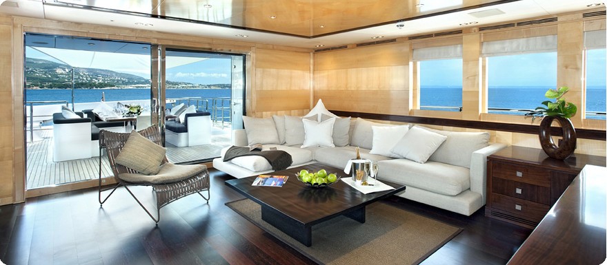 The interior décor is refined and elegant. The salon is on the main deck in a contemporary open plan, featuring the generous lounge aft and formal dining forward.