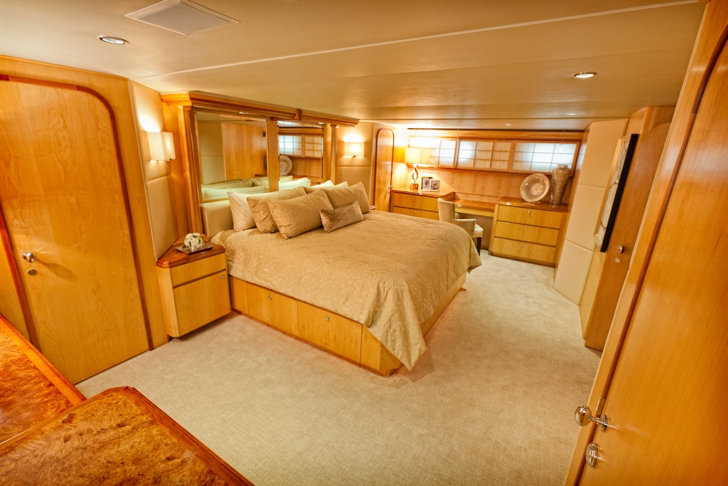 M/Y TRUE BLUE has a stylish and elegant interior; the salon is light and airy with 2 large sofas and chairs for lounging, forward of the salon is the formal ...