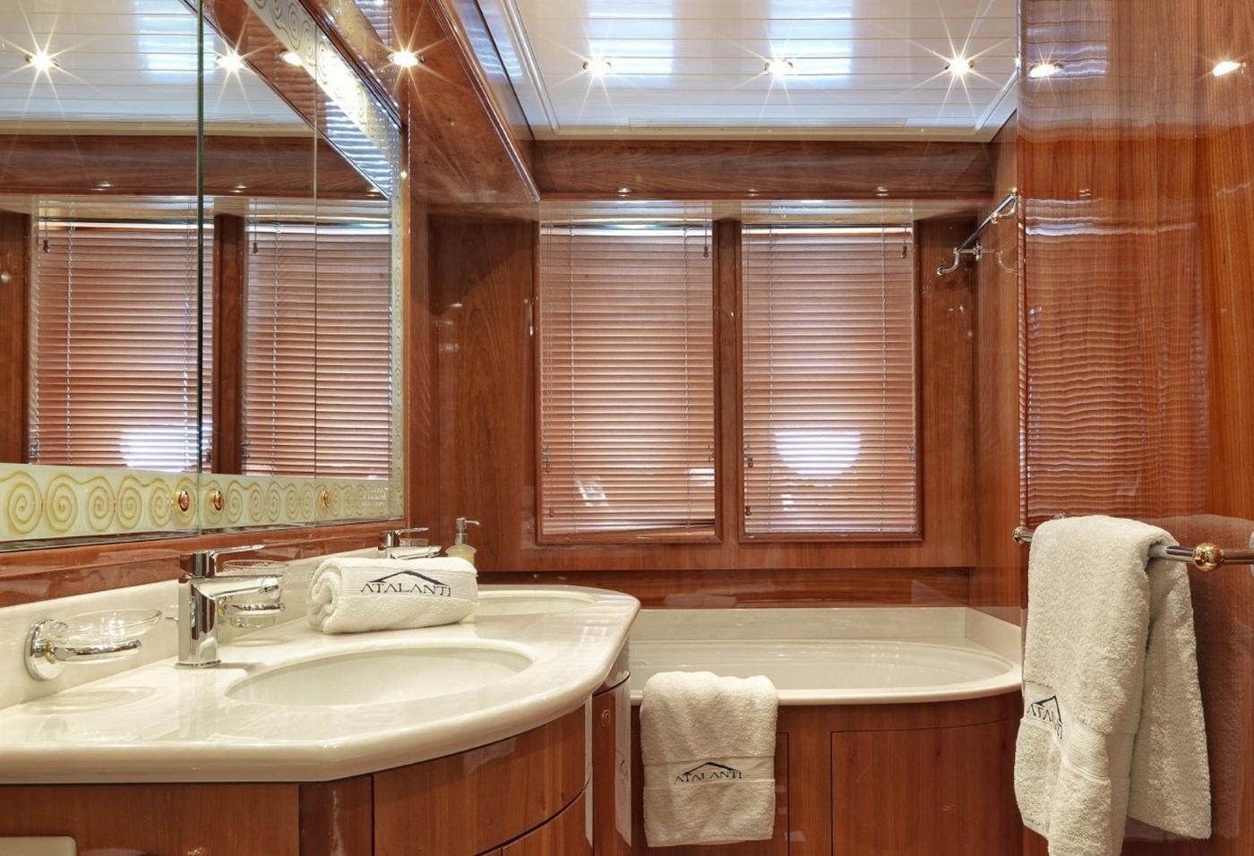There is a master stateroom with large ensuite bathroom and dressing room, a VIP stateroom with ensuite and 2 twin cabins, each twin cabin has an additional pullman berth. All cabins have en suite shower and wc with air conditioning throughout.